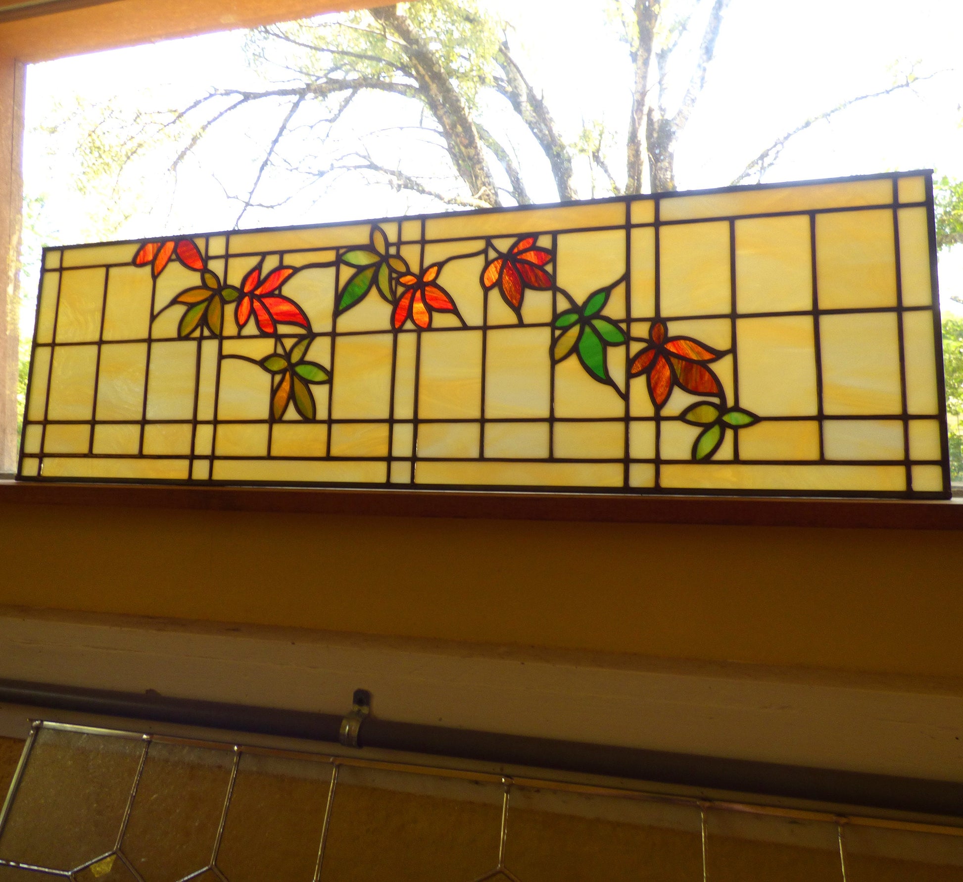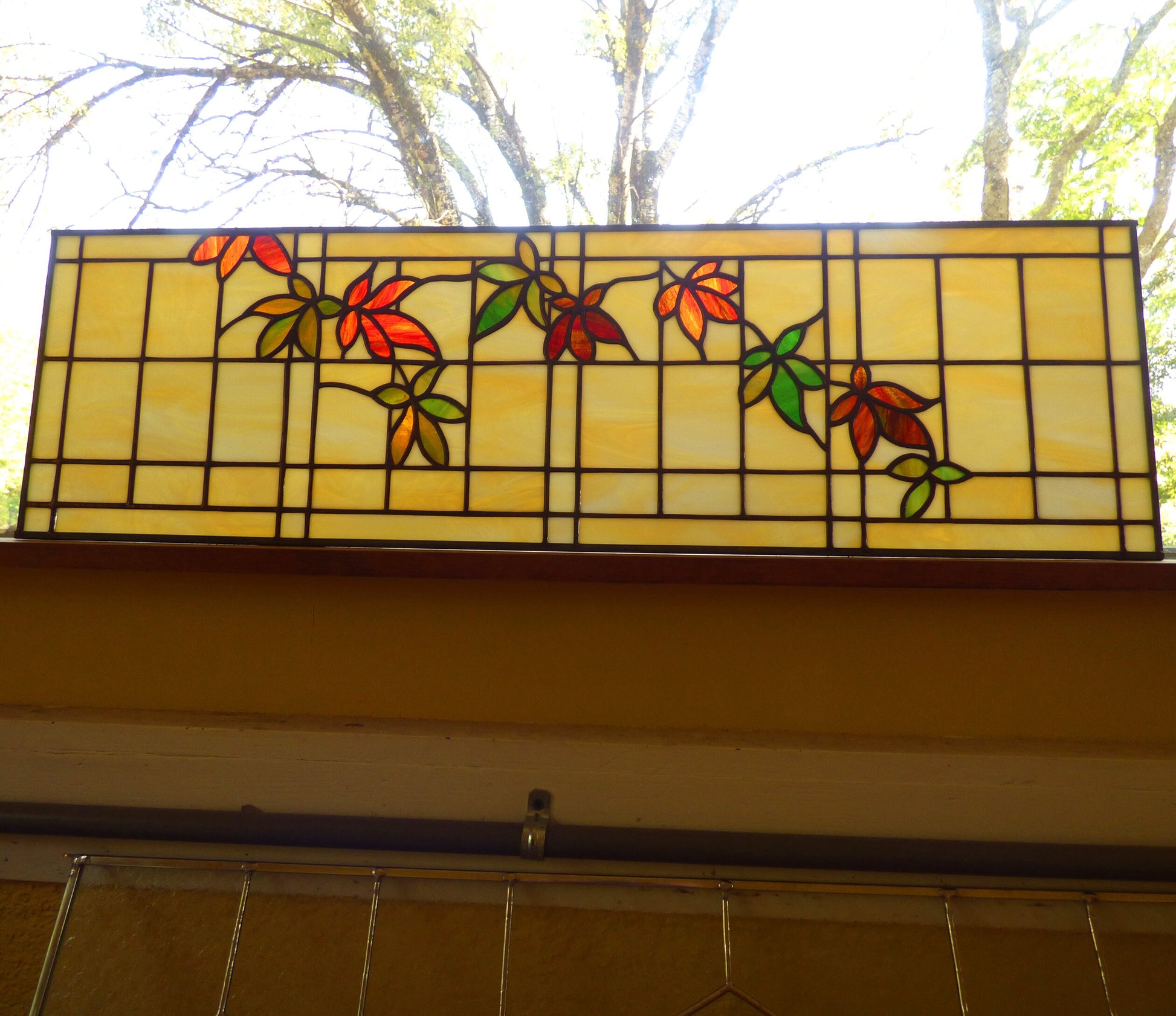 PREMADE and READY to SHIP - Stained Glass Transom - Leaf Transom Stained Glass Panel