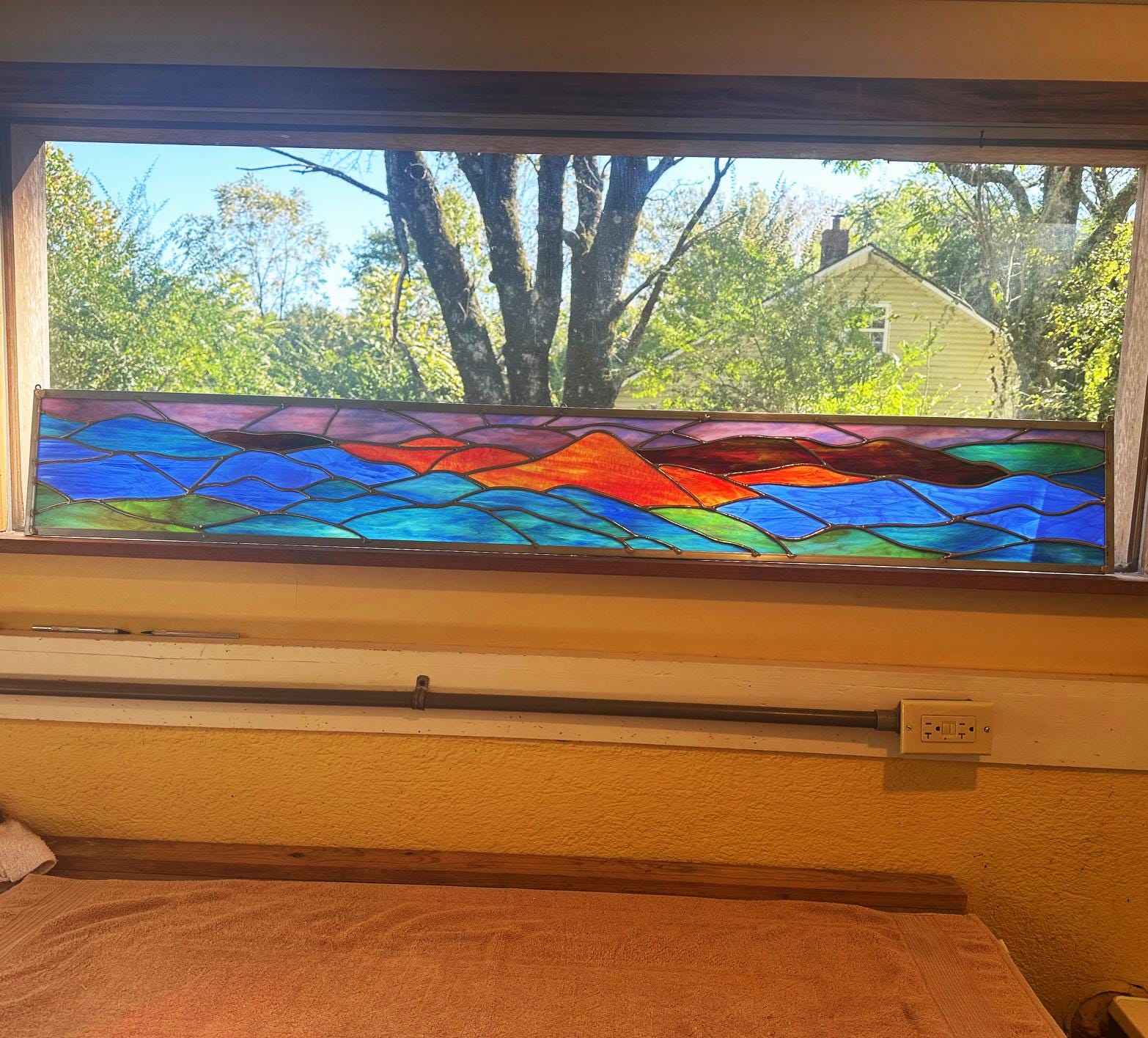 PREMADE and ready to SHIP - Stained Glass Transom - Scenic Mountains