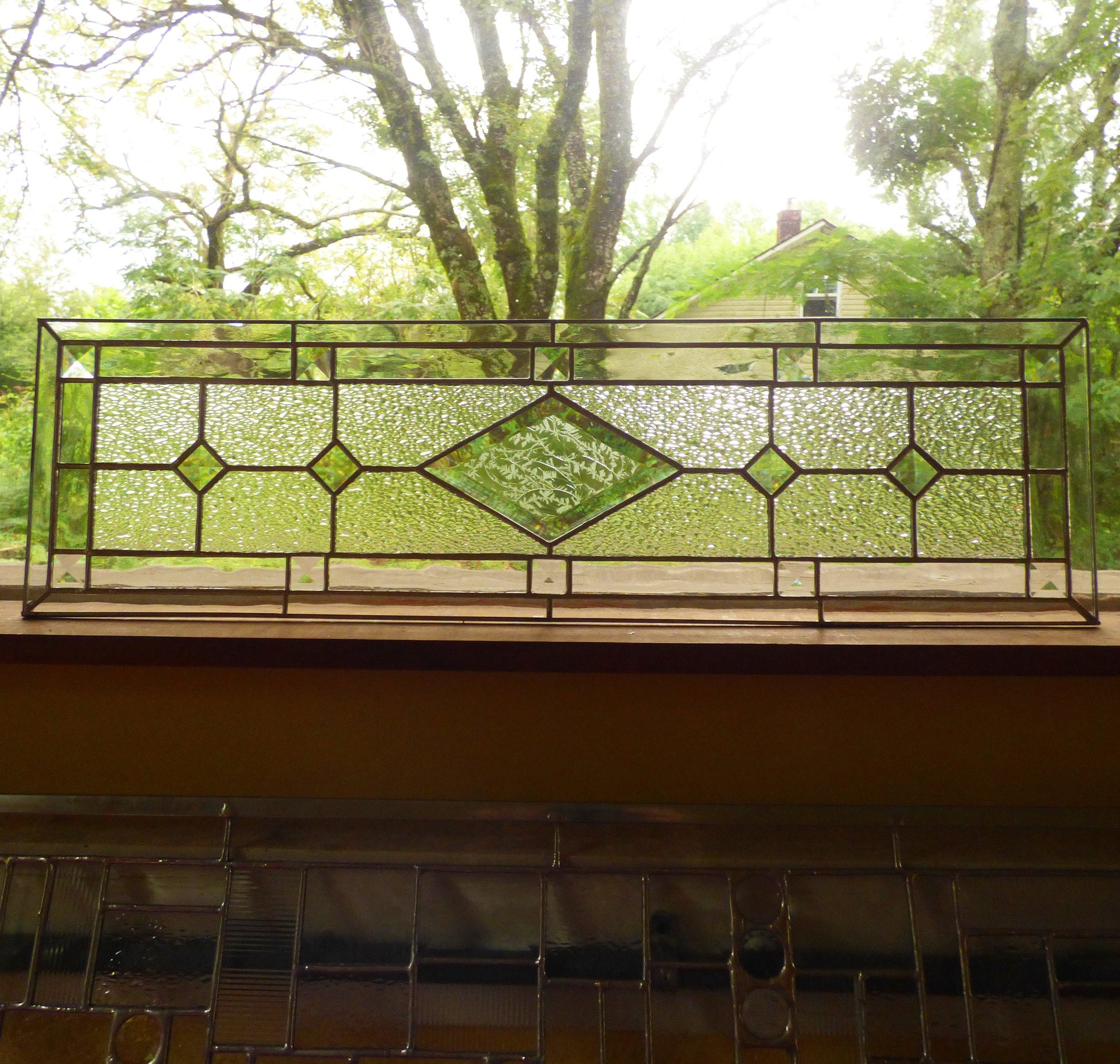 WE MAKE CUSTOM SIZES! This 5 diamond transom or sidelight is made with clear textured stained glass, diamond bevels with a square bevel surround. Pretty spectacular! Wonderful simplicity and adds privacy if needed. We can add hooks if needed.