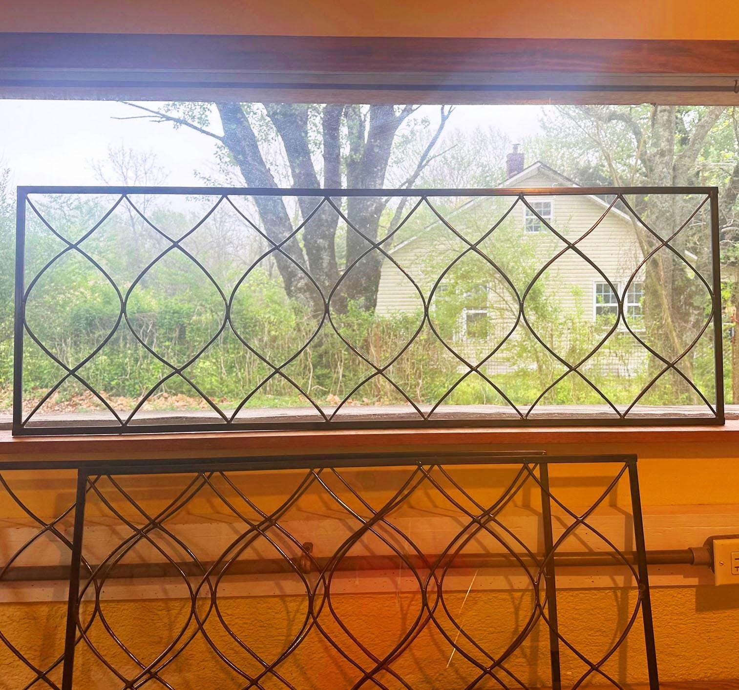WE MAKE CUSTOM SIZES! This Moroccan style stained glass transom, with its lovely curves, is made with all clear glass. This would be charming with color added. Brighten up your front door entrance or add privacy. Hooks can be added for a beautiful suncatcher. This transom measured 16x46. We can add hooks for hanging.