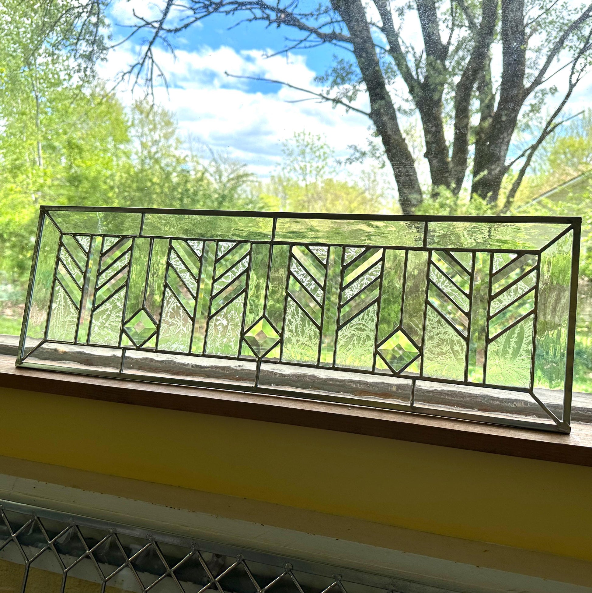 WE MAKE CUSTOM SIZES! This beautiful Wheat transom is made with all clear square bevels, rectangle bevels, a nice contrasting heavy texture with a clear slight wave glass. This transom works well at all sizes. All I need is the final size. This can make some incredible window art / suncatcher with an addition of hooks.
