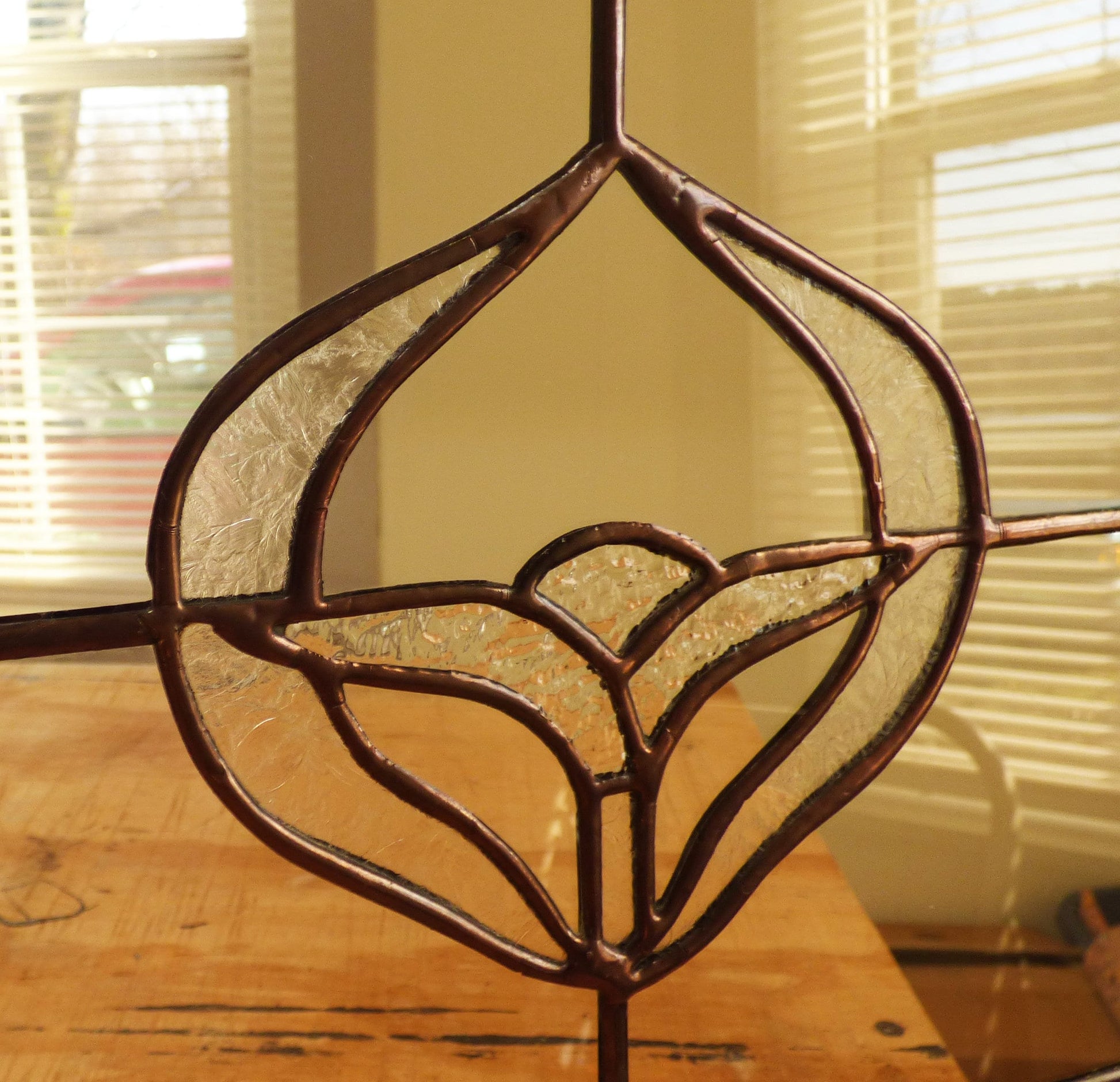 WE MAKE CUSTOM SIZES! An intricate Victorian Vintage Lilly stained glass transom or sidelight made with clear textures. Measures 12x57". This panel would work excellent with color, maybe pastels!!! If you wish to hang instead of installing, I can add hooks.